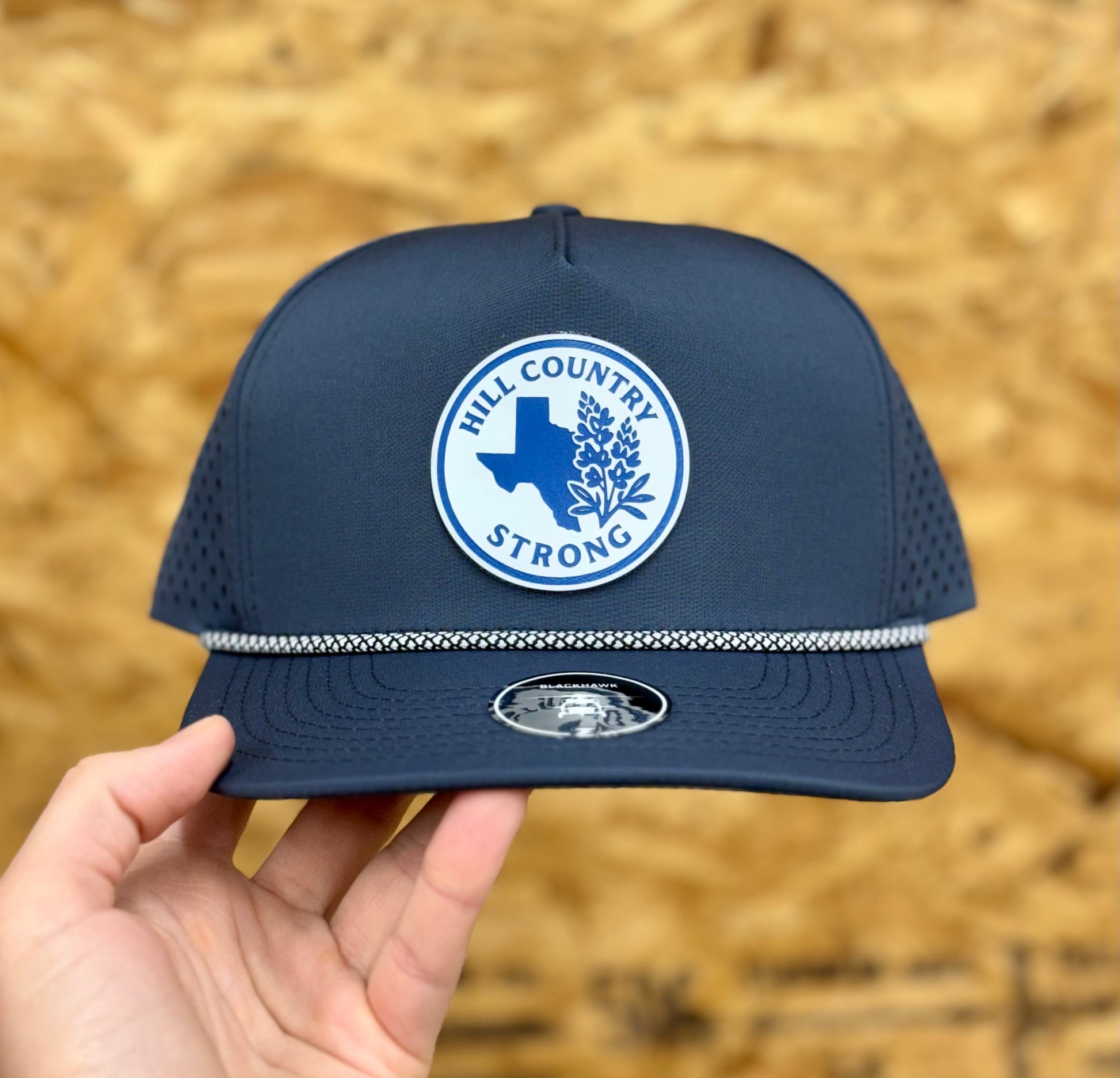 Hill Country Strong – Navy Hat with Blue Acrylic Patch